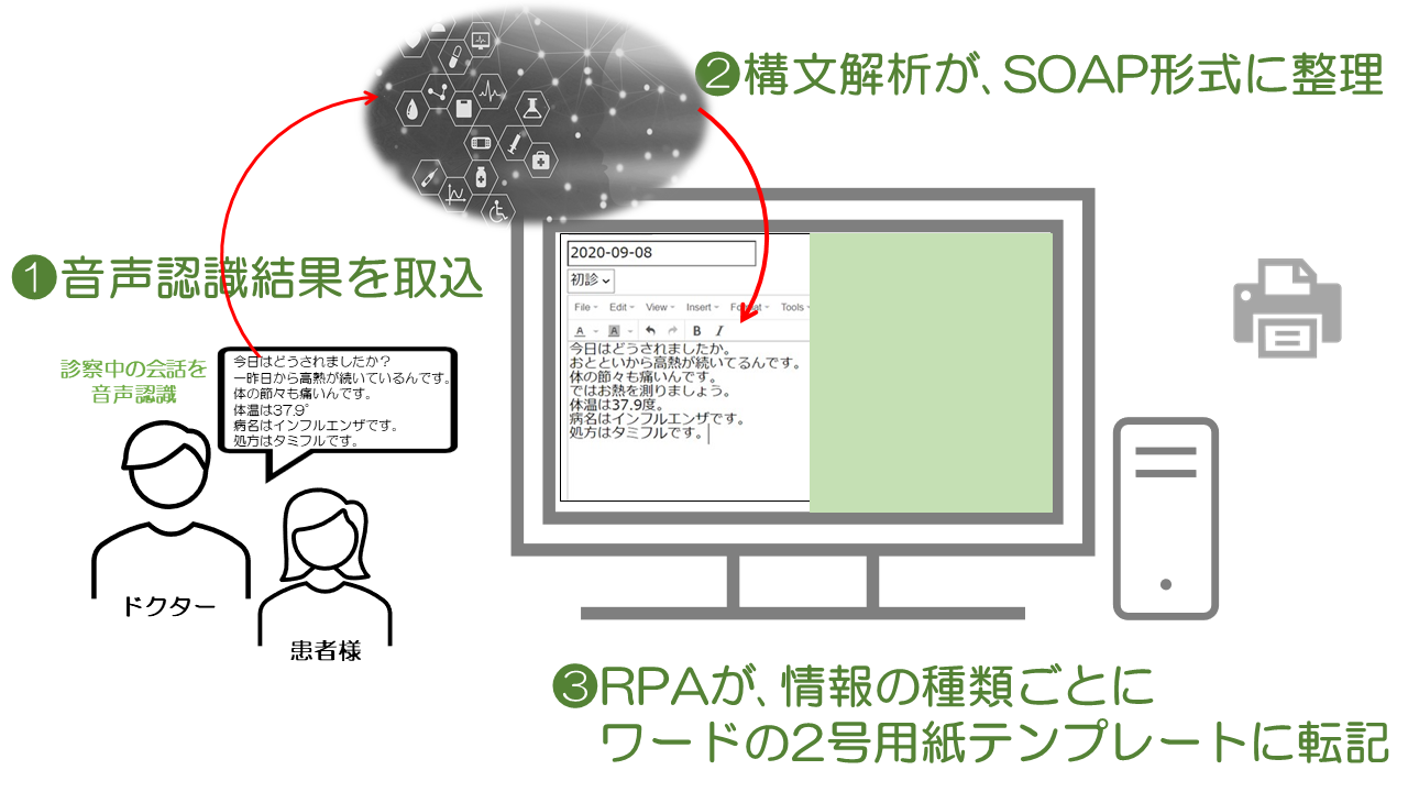 2.構文解析がバイタルなどのデータやオーダーを生成